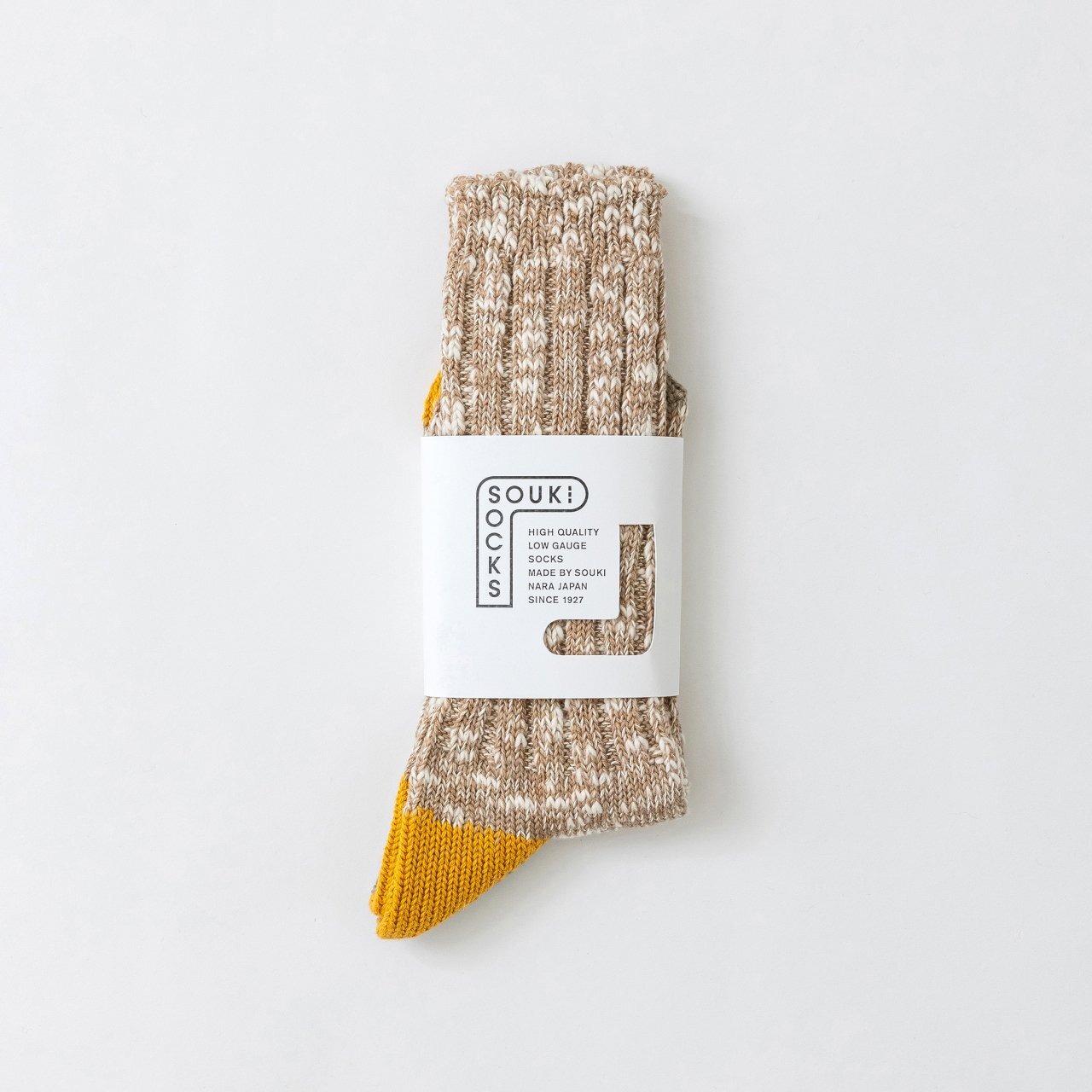 SOUKIが代々受け継いできた稀少なローゲージの編機と技術で、素材の良さを最大限に感じてもらえるカジュアルソックスです。