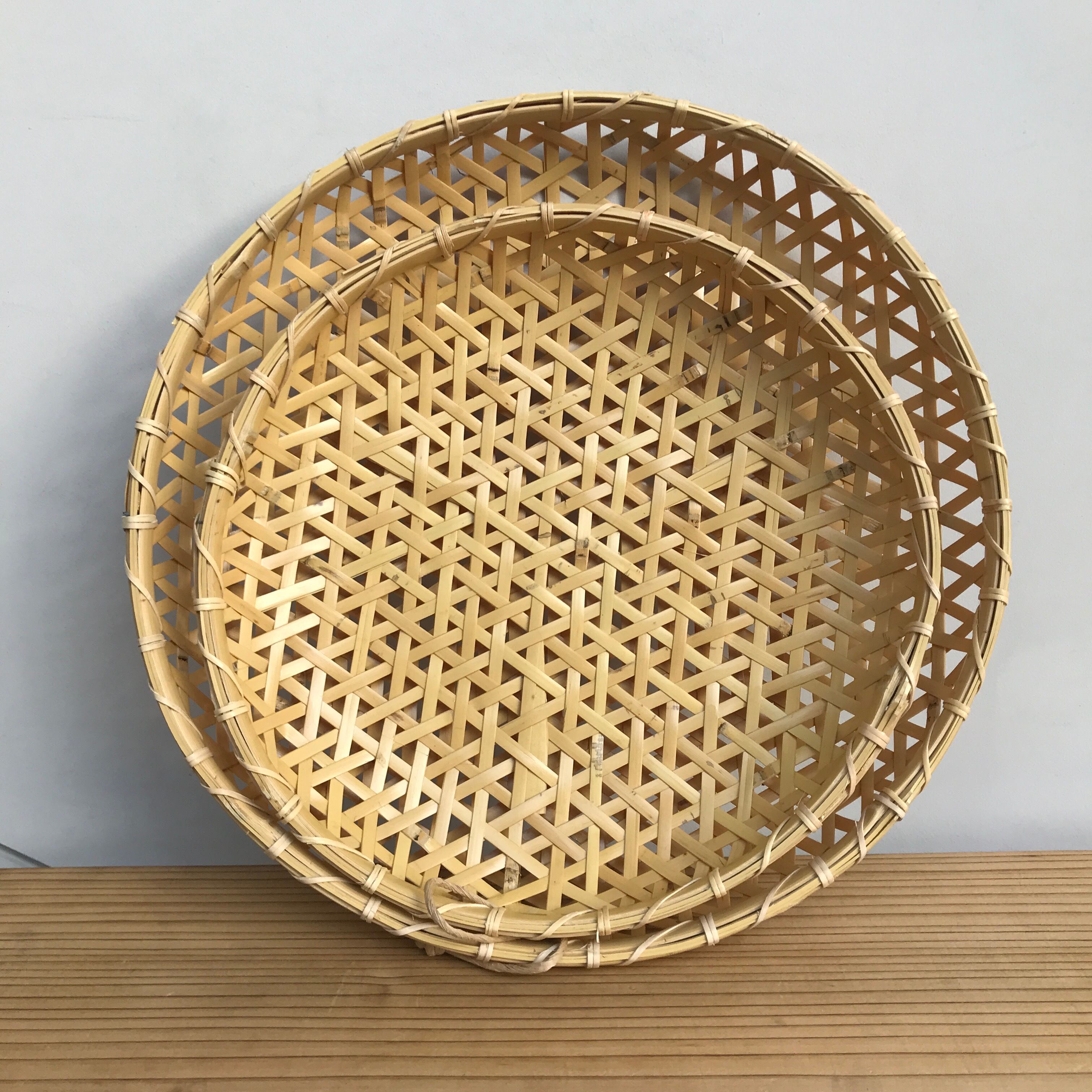 青い真竹を熱処理して油抜きされた白竹で端正に麻の葉編みで美しく仕立てられたかご。